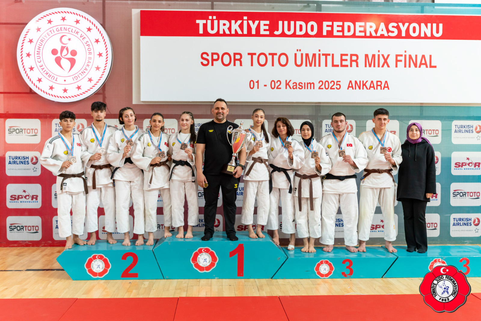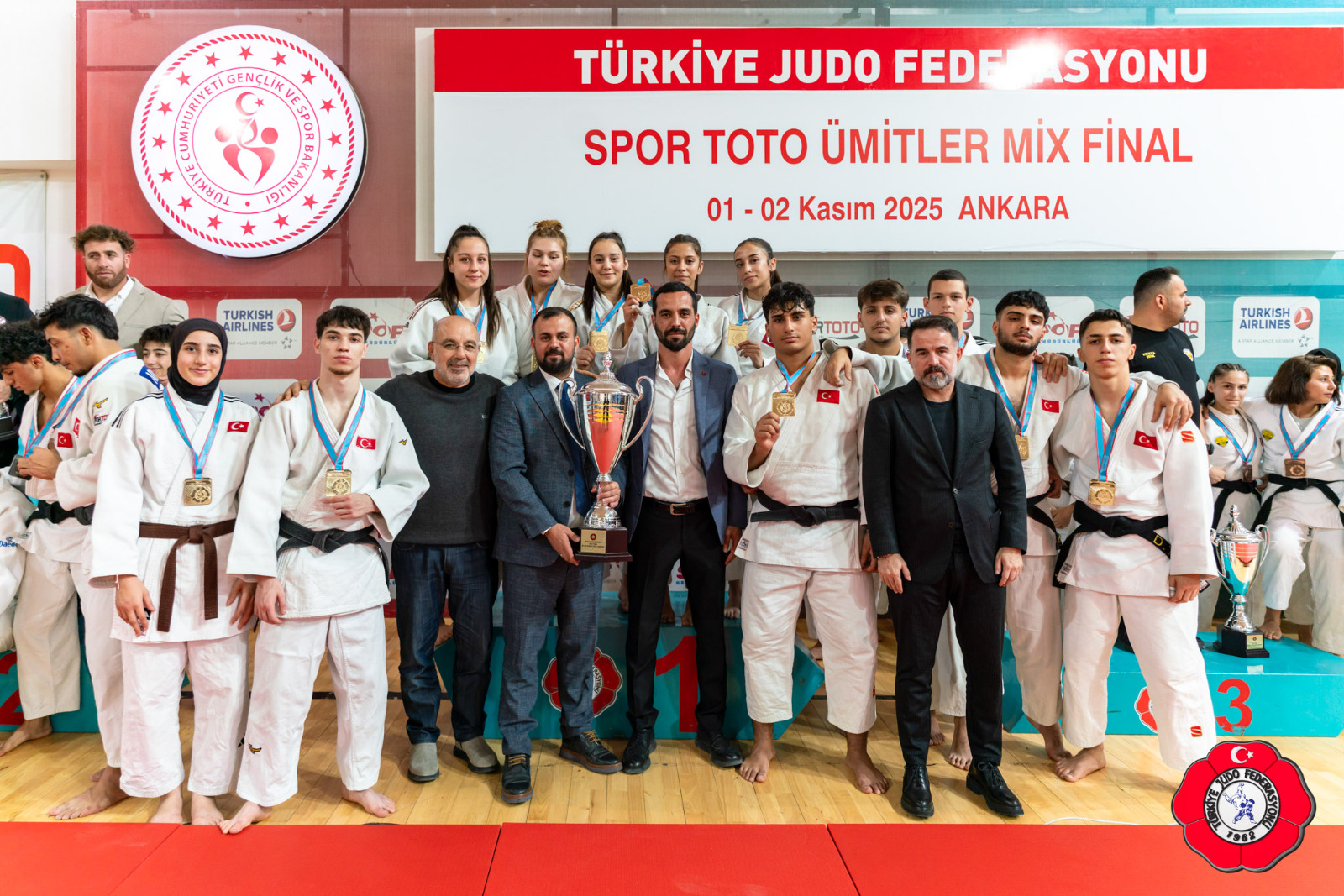 1 – 2 Kasım 2025 tarihlerinde Ankara’daki Türkiye Judo Federasyonu Tesislerinde düzenlenen Spor Toto Türkiye Ümitler Mix Ligi Final Etabı, büyük bir heyecanla tamamlandı.