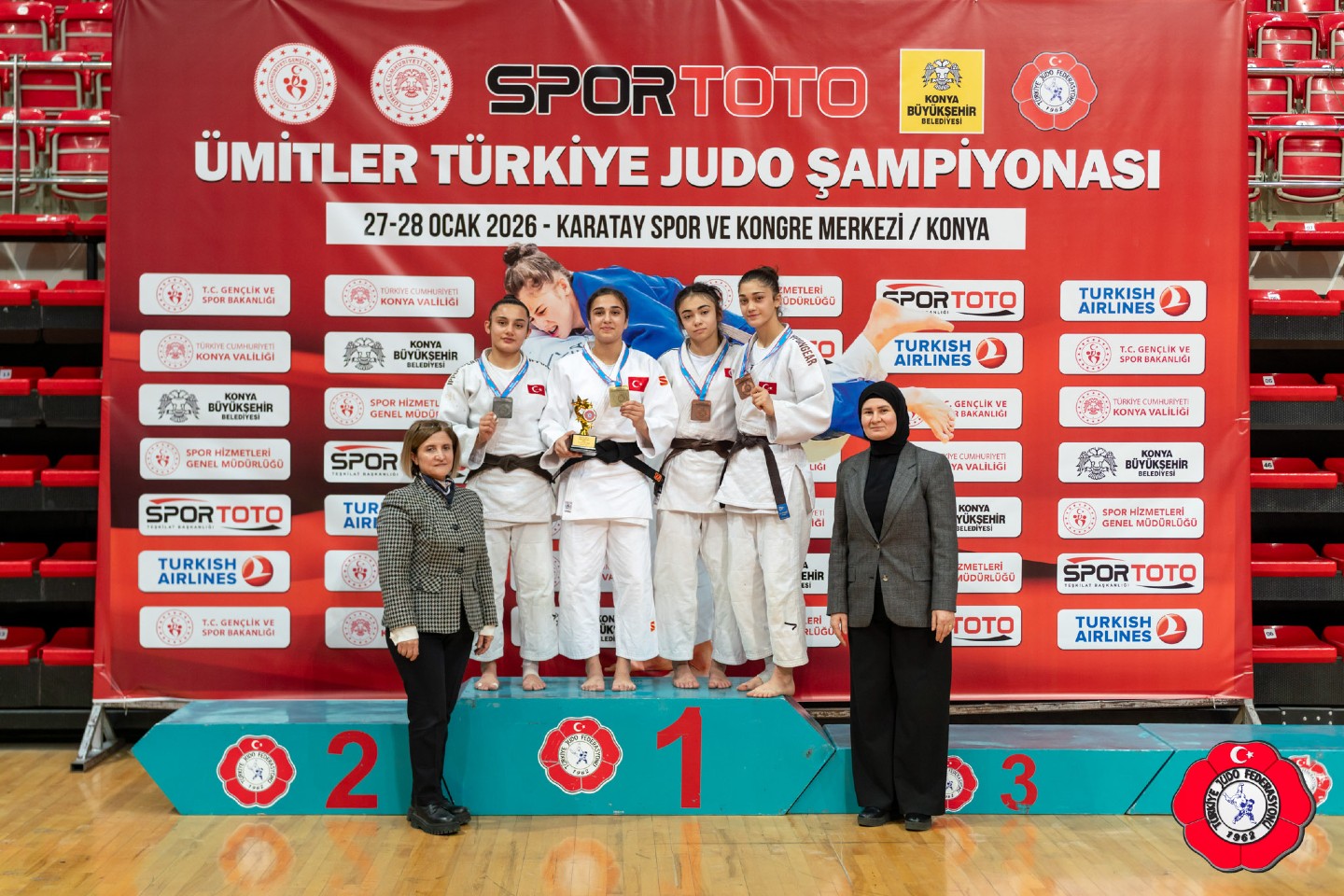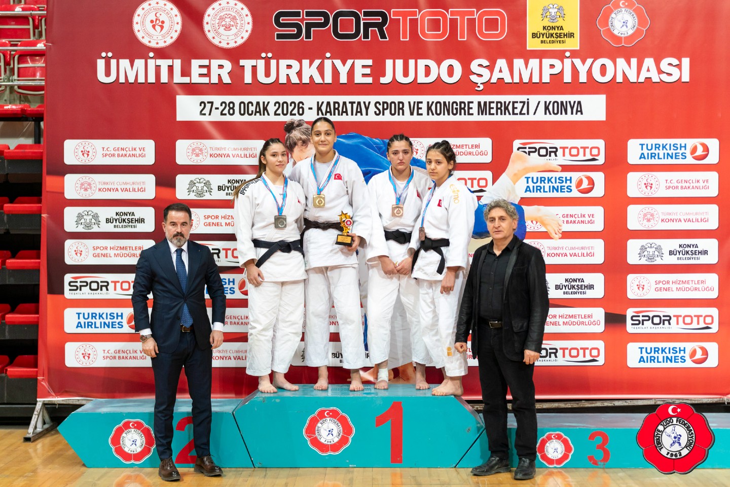 Konya’da 27–28 Ocak 2026 tarihlerinde düzenlenen 2026 Yılı Spor Toto Ümitler Türkiye Judo Şampiyonası sona erdi. Organizasyonda 452 erkek ve 443 kadın olmak üzere toplam 895 sporcu iki gün boyunca madalya mücadelesi verdi.